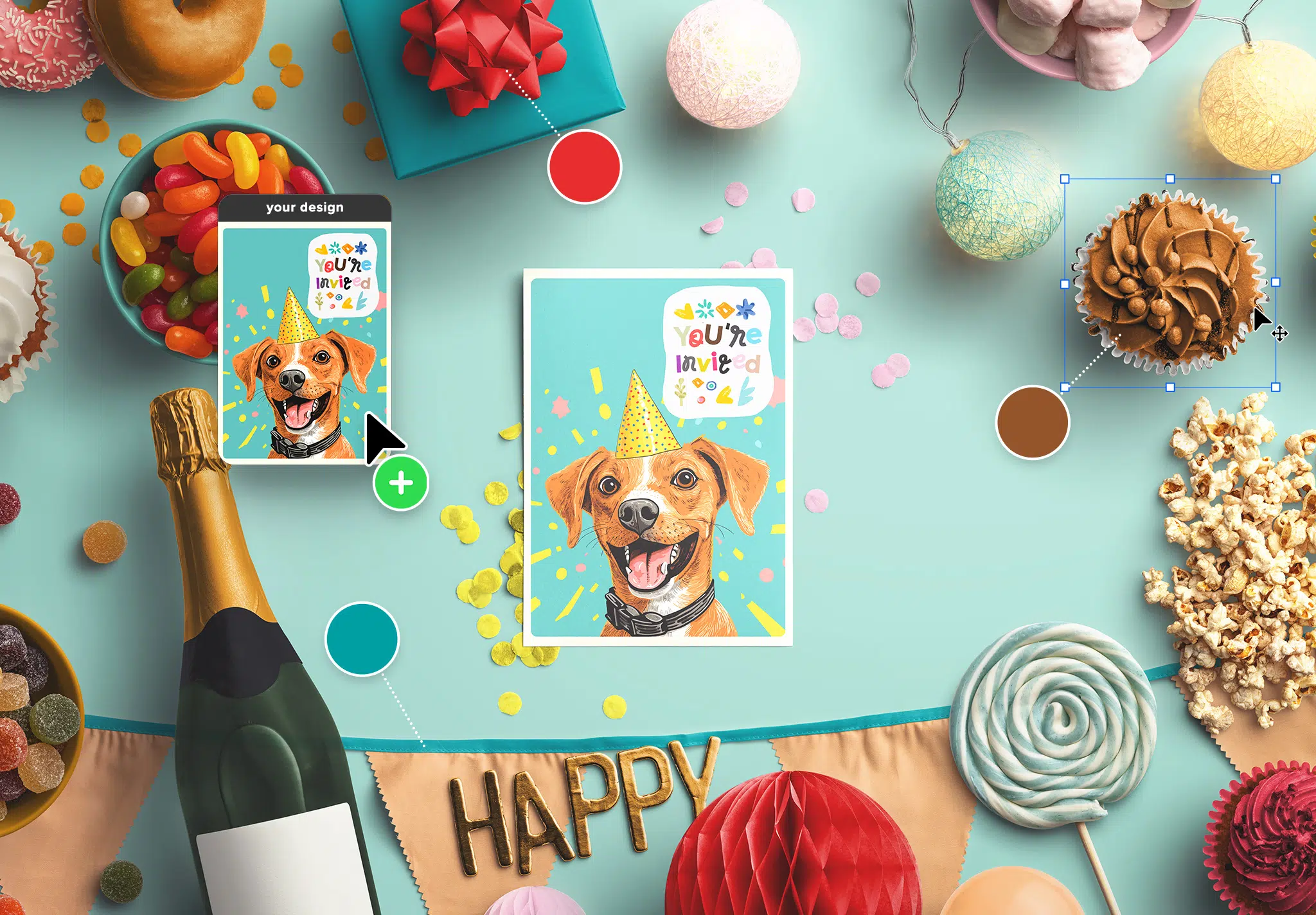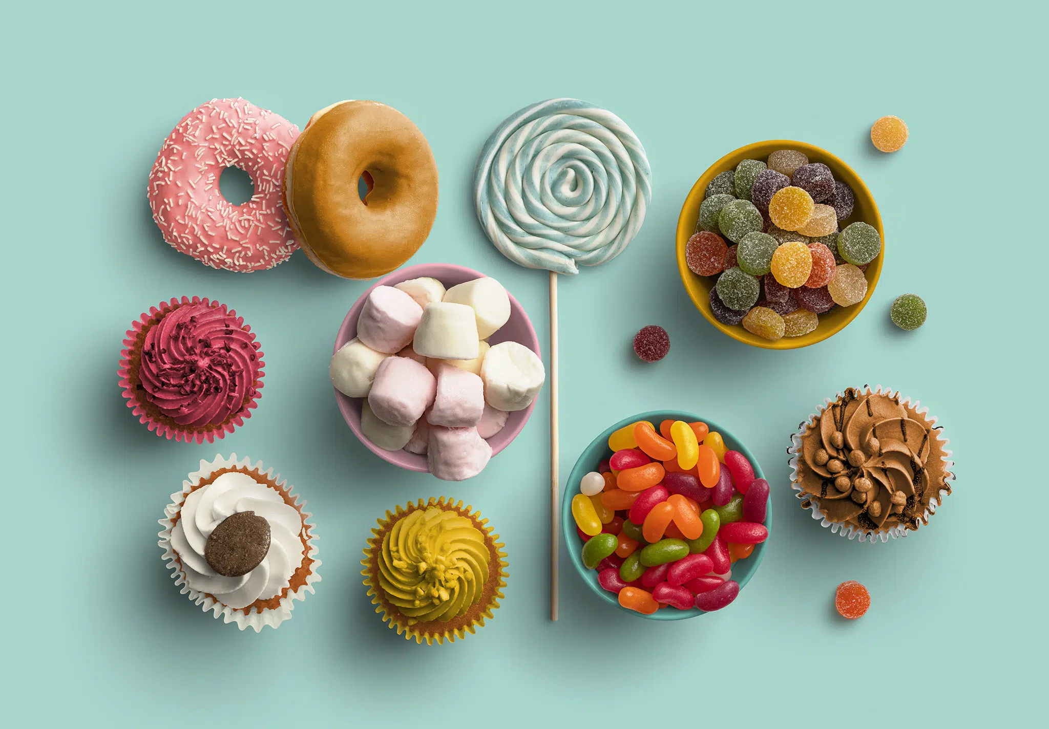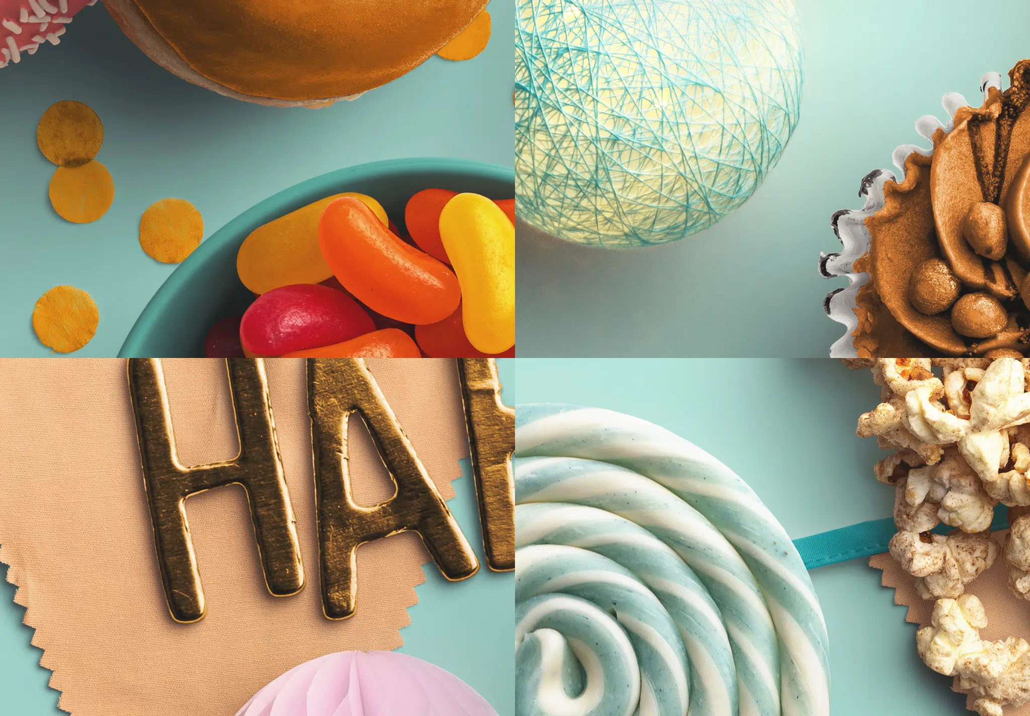 - Sweet Party Props: Cupcakes, Jelly Tots, Lolly, and various candy bowls.