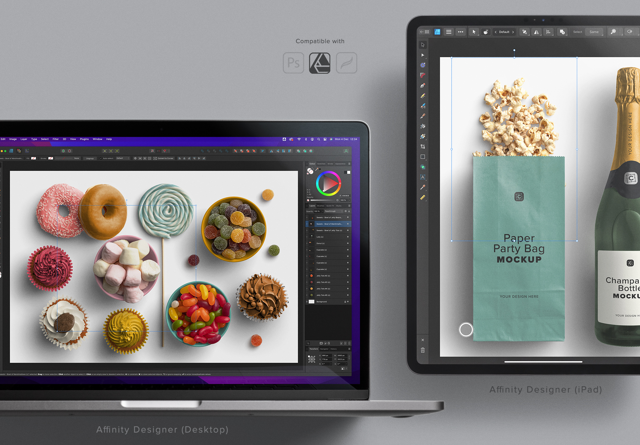 The Party Scene Creator is versatile and ready for use across various platforms, with included files for Photoshop, Affinity Designer, and Procreate. PNG files are also provided for broader compatibility needs.